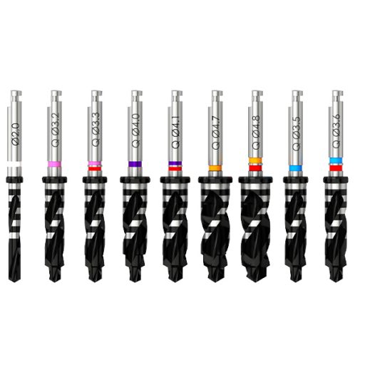 Quattrocone – Fraise pour corticale D 2.5/4.0/4.1 (violet/rouge) pour implant D 4.3 – ultra-court